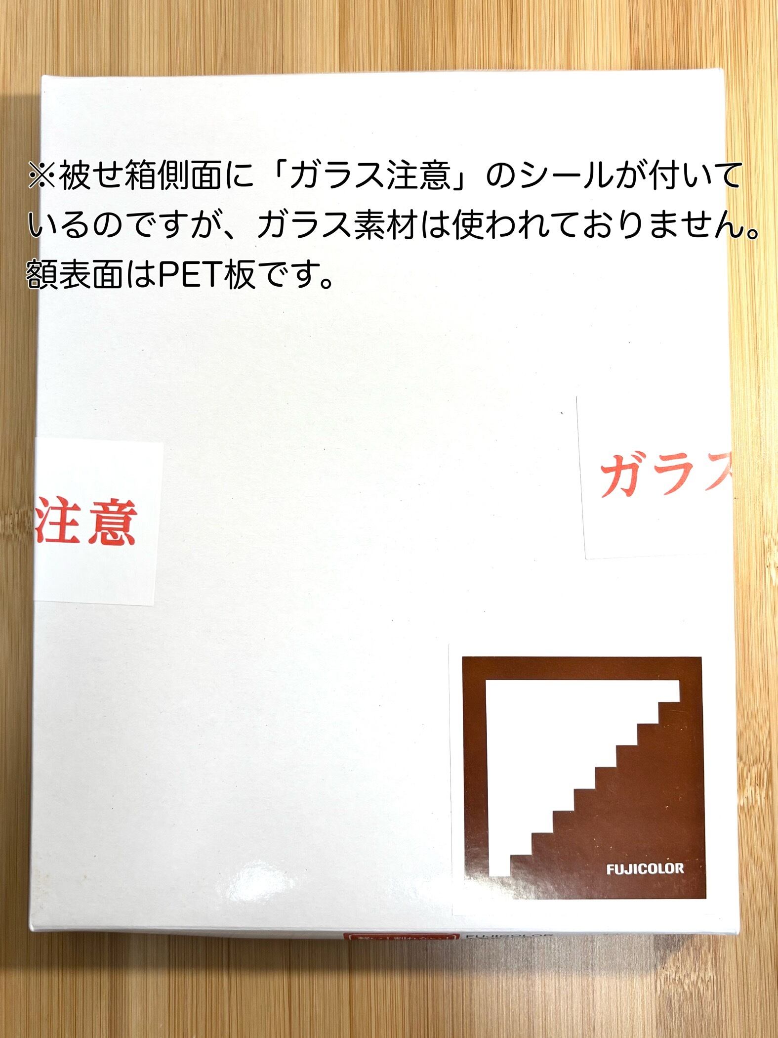 ・額購入時に入っていた白い被せ箱が付属します。箱の側面にガラス注意のシールが付いているのですが、ガラスは使用されておりません。