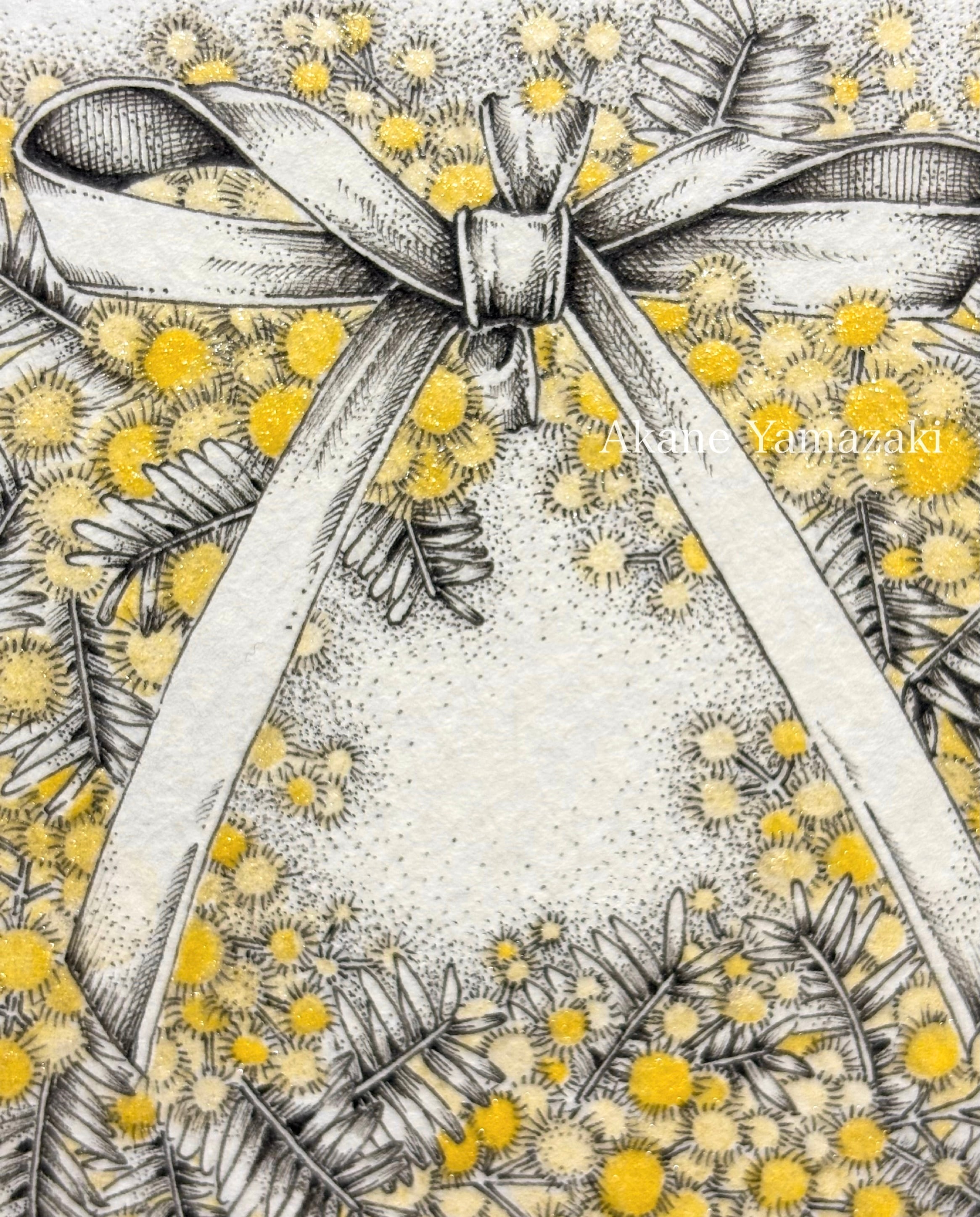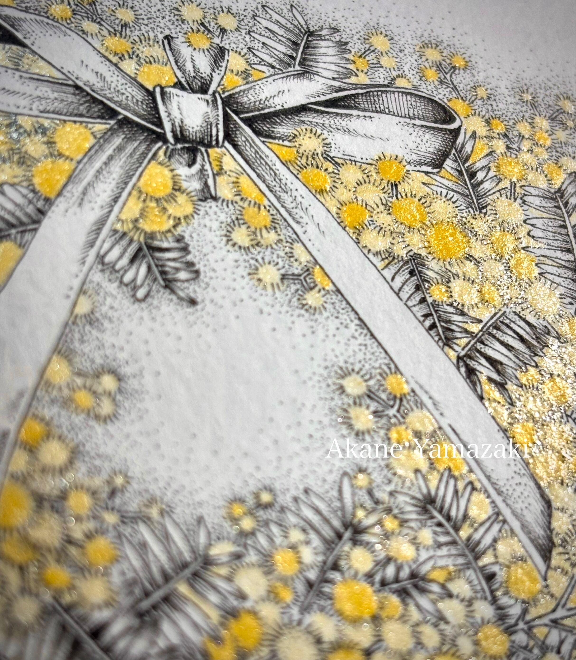 暖かくなり街中でミモザを見掛けた際に、フワフワで可愛らしい、春の訪れを感じさせる作品を描きたいなと思いました。